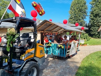 Angekommen auf der Festwiese standen u.a. schon das Festzelt, der Getränkewagen, der Eiswagen, ein Foodtruck und die Hüpfburg für die großen und kleine Gäste bereit.