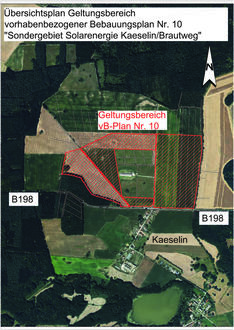 Der Geltungsbereich des vorhabenbezogenen Bebauungsplanes Nr. 10 „Sondergebiet Solarenergie Kaeselin/Brautweg“ befindet sich nördlich der Ortslage Kaeselin und ist im beiliegenden Übersichtsplan durch eine Linie umgrenzt. Der Aufstellungsbeschluss wird hiermit nach § 2 Abs. 1 Satz 2 Baugesetzbuch (BauGB) bekannt gemacht.