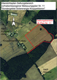 Der Geltungsbereich des vorhabenbezogenen Bebauungsplanes Nr. 11 „Sondergebiet Solarenergie Knüppeldamm“ ist im beiliegenden Übersichtsplan durch eine Linie umgrenzt. Der Aufstellungsbeschluss wird hiermit nach § 2 Abs. 1 Satz 2 Baugesetzbuch (BauGB) bekannt gemacht.
