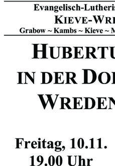 | Fr. | 10.11. | 19:00 | Hubertusmesse, im Anschluss Beisammensein mit zünftiger Stärkung; Wredenhagen |