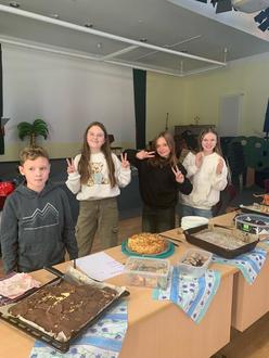 Am 15. Oktober veranstalteten die Klassen 5a und 6 einen Flohmarkt mit Kuchenbasar in der Aula der Schule.