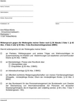 Der Widerspruch zur Weitergabe der o. a. Daten ist schriftlich beim Amt Röbel-Müritz, Marktplatz 1, 17207 Röbel/Müritz, einzulegen.