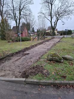Am 04.11. begannen die Bauarbeiten für den Bau eines Gehweges an der Lärzer Straße im Bereich der „Englisch“. Da dieser ehemalige Park inzwischen als Wald eingestuft ist, musste eine Waldumwandlung vorgenommen werden. Dies geschah durch den Erwerb von Waldpunkten. Die erste Ausschreibung hatte kein finanzierbares Ergebnis erbracht. Nachdem das Straßenbauamt die Förderung erhöht hatte, konnte nun mit dem Bau begonnen werden. Damit soll ein Stück Verkehrssicherheit hergestellt werden. Es ist immer ein großes Risiko, wenn Fußgänger die Straße benutzen müssen. Gerade in der Dunkelheit kann ganz schnell eine Person übersehen werden. Ganz besonders davon betroffen sind Schulkinder, die morgens zum Schulbus gehen. Das sollten sich mal die Leute durch den Kopf gehen lassen, die diese Baumaßnahme als Geldverschwendung ansehen.