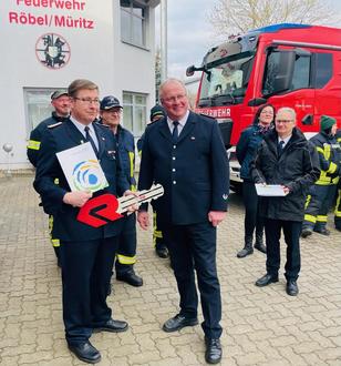 Symbolisch wurde nun am 28.01.2023 der Schlüssel an den Wehrführer der FFw Röbel/Müritz übergeben. Den Kameradinnen und Kameraden der Freiwilligen Feuerwehr wünsche ich für die Zukunft alles Gute und vor allem, dass die bevorstehenden Einsätze und Übungen immer gut und verletzungsfrei verlaufen.
