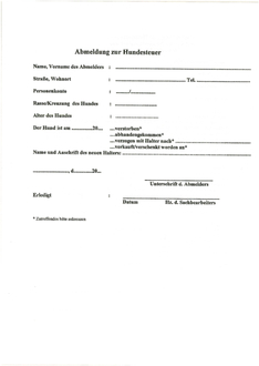 Die Formulare: Hundesteueranmeldung/Hundesteuerabmeldung finden Sie als Anlagen zu diesem Artikel.