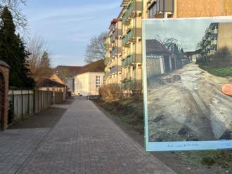Fast auf den Tag genau vor drei Jahren trat eine Anwohnerin, die seit Jahrzehnten dort wohnt, entschlossen an die Stadtverwaltung heran, mit der Bitte, den völlig desolaten Weg in Stand zu setzen. Über Jahre hinweg wurde dieser kleine Weg, der gleichzeitig auch als Zufahrt für die Anwohner dient, nur notdürftig ausgeflickt, sodass dieser schon höher war, als die Grundstückszuwegungen.