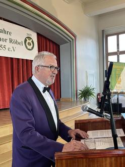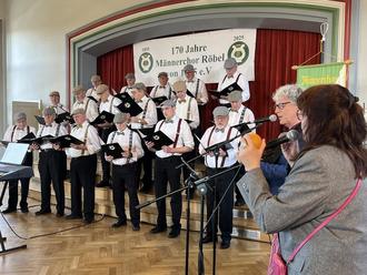 Mit der Liedzeile von Santiano „Wir sind stolz ohne Scheu - Unzertrennlich und treu“ möchte ich euch, liebe Sangesbrüder, persönlich und im Namen der Stadt Röbel/Müritz herzlich für euer Engagement und Traditionsbewusstsein danken. Ich wünsche dem Chor, dass es sich auch weiterhin gut für ihn fügt und wir zum nächsten Jubiläum wieder im Sinne des Gesanges zum Zwecke der Erheiterung zusammenkommen, egal, ob unter einer Eiche oder auf einer festlichen Bühne. Unsere Unterstützung ist euch gewiss!