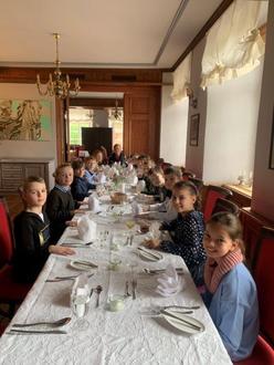 Danach durften die Schüler*innen ihren eigenen Platz eindecken und ihre Serviette selbst brechen. Zum Mittagessen gab es ein leckeres Drei-Gänge-Menü, wo wir gleich unsere gelernten Tischmanieren anwenden konnten. Zum Abschied bekam jede*r Schüler*in einen Löffel zur Erinnerung an diesen schönen und erlebnisreichen Tag.