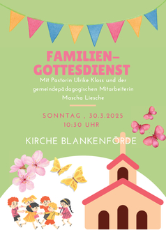 | So. | 30.03. | 10:30 | gemeinsamer Familiengottesdienst der Kirchengemeinden Lärz/Schwarz, Mirow, Wesenberg u. Schillersdorf; Kirche Blankenförde |