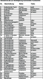 Gemäß § 980 Abs. 1 Bürgerliches Gesetzbuch werden die Empfangsberechtigten hiermit aufgefordert, ihre Rechte an den Fundsachen bis zum 24. April 2023, 12:30 Uhr geltend zu machen.