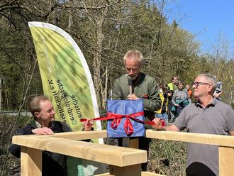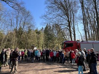 Anschließend gab es auf dem nahen Waldparkplatz einen von Feuerwehr und weiteren Engagierten vorbereiteten Imbiss mit Gulaschkanone, Musik und netten Gesprächen. Das Umfeld des Ehrenbaumes war tatkräftig aktualisiert worden mit einem Besucherpodest auf der gegenüberliegenden Straßenseite und mit neuer Umgrenzung des „heiligen Raumes“ um den Baum, der nicht betreten werden darf, um die Wurzeln zu schonen und wegen möglicherweise herabfallender Äste.“