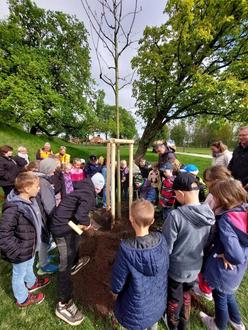 Herr Guzu betonte in seiner Ansprache, dass wir mit dieser Pflanzung ein kleines, aber wichtiges Zeichen setzen, für unsere Natur, für die Vielfalt der Bäume und auch für den Zusammenhalt in unserer Stadt. Denn jeder Baum, den wir heute pflanzen, ist ein Stück Zukunft.