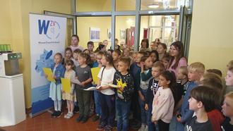 Mit den Worten „Das Wasser soll fließen“ eröffnete der Schulleiter die Zeremonie. Im Schulflur versammelten sich alle Kinder, um die feierliche Übergabe zu begleiten. Eine Gruppe von Zweitklässlern trug dabei ein selbst verfasstes Gedicht rund um das Thema Wasser vor – ein stimmungsvoller und kindgerechter Auftakt.