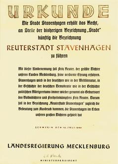 Weitere Informationen zur Verleihung der Bezeichung „Reuterstadt“ finden sie auf Seite.............