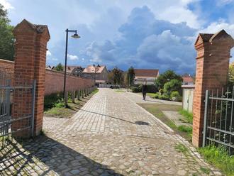 Am 31.07.2023 konnte die technische Abnahme des Straßen- und Rohrleitungsbaus im Franzosenweg erfolgen. Die Firma Koch hat trotz der Behinderung durch den erforderlichen Gebäudeabbruch der baufälligen Sattlereiwerkstatt nahezu fristgerecht und in sehr guter Qualität die neue Natursteinpflasterstraße zur Nutzung übergeben können. Ab Anbindung Lübbertweg bis zum Schlossgartentor war aus Platzgründen die Ausbildung eines separaten Gehweges nicht möglich. So wurde die Planungsidee einer Mischverkehrsfläche mit barrierefreier Fußgängerspur aus geschnittenem Natursteinpflaster umgesetzt. Außerhalb des Baufeldes wurde die Spur für die Anbindung in den Schlosspark fortgeführt, so dass die Barriere der Treppen bzw. die Großpflasterstraße umgangen werden kann. Die geplante Hecke neben den Längsparkplätzen vor Haus Nr. 28a wird zur Pflanzzeit im Herbst ausgeführt und verbleibt als Restleistung. Die neue Straße fügt sich hervorragend in das Ambiente an der Schlossmauer ein. Für den Bau dieser Straße dürfen lt. Bewilligungsbescheid Städtebaufördermittel von Bund, Land und Gemeinde in Höhe von 227 T€ eingesetzt werden. Die Gesamtkosten werden sich für die Stadt voraussichtlich auf rund 430 T€ belaufen.