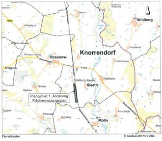 Die Gemeinde hat die von der Gemeindevertretung am 01.07.2025 beschlossene 1. Änderung des Flächennutzungsplanes der Knorrendorf - Umwandlung von Fläche für die Landwirtschaft in Sonstiges Sondergebiet "Photovoltaikanlage bei der höhere Genehmigungsbehörde, Landkreis Mecklenburgische Seenplatte zur Prüfung und Genehmigung vorgelegt.