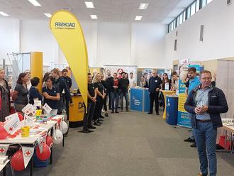 Im Anschluss richtete auch der neue Schulleiter des Reuterstädter Schulcampus, Torsten Richter, das Wort an die Betriebe. Er erläuterte den zeitlichen Ablauf und wünschte allen maximale Erfolge. Da unsere letzte Berufsmesse auf Grund von Corona und der Schließung der Zweifeldturnhalle bereits drei Jahre zurückliegt, waren die rund 600 Schüler des Reuterstädter Schulcampus und natürlich weiterer Schulen ganz gespannt darauf, die verschiedenen Berufszweige zu entdecken und die Stände zu besuchen.