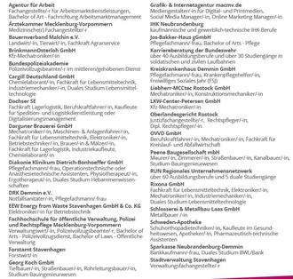 Aufstellung der Unternehmen, die sich an der Berufsmesse beteiligt haben: