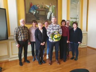 Vlnr: Yves Gänser (Ltr. Bauhof), Christiane Strobl (Bauamtsleiterin), Anja Vonthien (Ordnungsamtsleiterin), Katrin Stegemann (Personalrat), Christopher Göde, Grit Lüders (Hauptamtsleiterin), Heike Waltenburg (Gleichstellungsbeauftragte), Berit Neumann (1. Stadträtin, Kämmereileiterin)