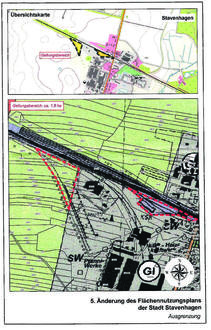 Die Lage des Änderungsbereiches ergibt sich aus dem beigefügten Kartenausschnitt. Der Änderungsbereich beläuft sich auf etwa 1,8 ha und umfasst die Flurstücke 91/22 (tiw.), 91/33 (tw.), 254/2 (tw.), 255/4 (tiw.), 256/5 (tiw.), 258/5 (tw.), 259/5 (tw.), 260/5 (tw.), 264/5 (tlw.). 265/2, 266/2, 267/2, 271/6 (tw.) und 271/15 der Flur in der Gemarkung Stavenhagen. Der Änderungsbereich umfasst Flachen für Bahnanlagen und Flächen für die Landwirtschaft. Planungsziel ist die Änderung des Flachennutzungsplans im Parallelverfahren zum Bauleitplanverfahren Aufstellung des vorhabenbezogenen Bebauungsplans Nr. 20, Industriepark EEW an der Bahnlinie* der Reuterstadt Stavenhagen.
