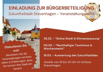 Während jeder Veranstaltung wird ein spezielles Thema der lebenswerten Stadt behandelt. Dafür holen wir Menschen dazu, die von guten Beispielen anderer Ankerstädte erzählen werden. Es ist naheliegend, dass hierbei Ideen für Stavenhagen entstehen – wenn sie nicht schon längst da sind. Diese Ideen wollen wir aufnehmen und abklopfen, wie man diese in Stavenhagen gemeinsam umsetzen könnte.