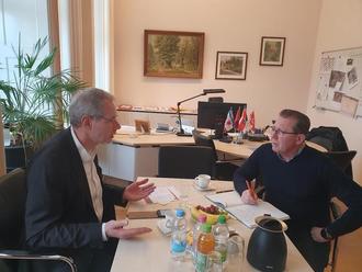Nachdem Johannes Arlt den Bürgermeister am 22.02.2023 besuchte, kam einen Tag später, am 23.02.2023 sein Parteikollege Thomas Krüger zu Besuch in die Stadtverwaltung.