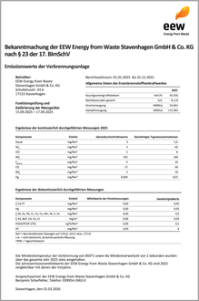 Die Jahresemissionsmittelwerte der EEW Energy from Waste Stavenhagen GmbH & Co. KG sind 2025 vergleichbar mit denen der Vorjahre.