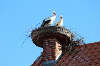 Auf unsrer Wiese gehet was, Watet durch die Sümpfe. Es hat ein schwarzweiß Röcklein an, Trägt auch rote Strümpfe, Fängt die Frösche, schnapp, schnapp, schnapp, Klappert lustig klapperdiklapp.