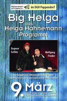 Wir starten als Kulturverein am Musenhof e.V. am 09. März 2024 mit einem ganz besonderen Höhepunkt für alle Gäste, die sich an die Zeiten der ostdeutschen Kultur erinnern bzw. an so manchen „Kessel Buntes“ denken, vor allem an die „Kessel“ mit Helga Hahnemann. Erleben Sie ein buntes Programm mit Helgas Sketchen, aufbereitet von ihrer beliebten Freundin Dagmar Gelbke. Dazu laden wir alle unsere Gäste herzlich ein.