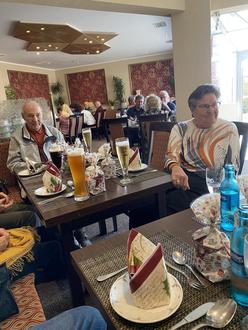 Gegen 16:00 Uhr wurde das reichhaltige Kuchenbuffet eröffnet. Nach Kaffee und Kuchen kam dann noch eine Überraschung: „Feuerzangenbowle mit Schaudemonstration". Jeder bekam ein Glas Bowle zum Probieren. Dann stiegen wir alle gut gelaunt in unseren Bus. Für uns alle ging wiedermal eine gelungene sowie gut durchorganisierte Fahrt zu Ende.