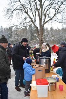 Das Wetter hätte dafür nicht passender sein können - bei klarer, kalter Luft und glitzerndem Schnee kam weihnachtliche Stimmung auf. Viel wurde geplant und organisiert, viele Attraktionen erwarteten Eltern, Großeltern und Kinder. Um 10 Uhr kamen nach und nach unsere Gäste. Mit oder ohne Schlitten und warm eingepackt, füllte sich der Platz mehr und mehr und ein bunter Trubel war zu beobachten. Dann konnten wir auch schon mit den Highlights starten.