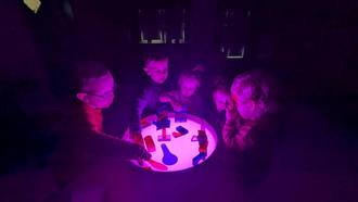 Alle Gruppenräume und Flure wurden durch Lichterketten und Lichtquellen in ein warmes Licht getaucht. Es gab in allen Gruppen unzählige Angebote rund um das Licht für die Kinder. So wurde auch von allen Kindern die Snoezel-Landschaft in unserem Krippenneubau genossen. Es wurden Laternen gebastelt und Gläser bunt beklebt. Die gebastelten Kunstwerke dekorierten ebenfalls die Kita. Experimente mit einem „Lichtertisch“ oder mit einem Schattenkino gehörten ebenfalls zu unseren Höhepunkten. Klein und Groß erfreuten sich an der Lichtervielfalt, welche die dunklen Tage zu einem gemütlichen Beisammensein verwandelte.