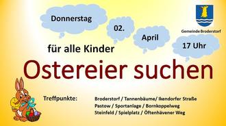 Ihr seid herzlich eingeladen von fleißigen Osterwichteln aus der Gemeinde Broderstorf, an folgenden Orten für den Ostersonntag zu üben und schon mal nach bunten Leckereien zu suchen.