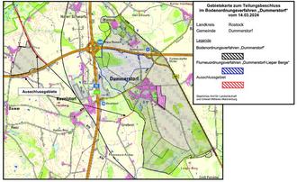 Das Bodenordnungsverfahren „Dummerstorf“ wird in das Bodenordnungsverfahren „Dummerstorf“ und in das Flurneuordnungsverfahren (FNV) „Dummerstorf-Lieper Berge“ geteilt.