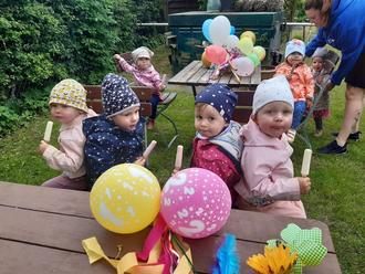 Zurück im Kindergarten, ging das bunte Programm auch weiter. Viele Spiele, wie Sackhüpfen und Ringe werfen, standen auf dem Plan. Auch viele bunte Seifenblasen schmückten den Spielplatz. Es war ein sehr aufregender und schöner Tag!