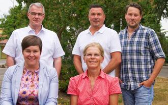 hinten von links: Andreas Reinke (Amtsvorsteher), Henrik Holtz (Bürgermeister Roggentin), Sandro Geister (Bürgermeister Thulendorf) vorne von links: Eva-Maria Kröger (Oberbürgermeisterin Rostock), Monika Elgeti (Bürgermeisterin Broderstorf) Es fehlt Jörg Wallis (Bürgermeister der Gemeinde Poppendorf).