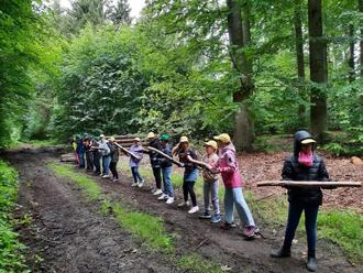 In wenigen Tagen endet das Schuljahr 2023/2024. Für die Mädchen und Jungen der vierten Klassen der Grundschule An der Carbäk gab es noch einen besonderen Höhepunkt in der ersten Juliwoche. Alljährlich organisieren die Mitarbeiter der Forstämter in MV für die Grundschulen die Waldolympiade. Bei diesem Wettbewerb können die Kinder zeigen, was sie über Tiere und Pflanzen in den heimischen Wäldern gelernt haben, wie man sich richtig im Wald verhält und welchen Nutzen der Wald für uns alle hat. Wetterfest gekleidet wanderten unsere Viertklässler in ein nahegelegenes Waldgebiet. Dort wurden wir von den Mitarbeitern des Forstamtes Billenhagen herzlich begrüßt und über den Ablauf informiert. Jede Klasse bekam zuerst einen Namen, bevor es zu den Stationen ging. Die „Waldmäuse“, die „Eichhörnchen“ und die „Rothirsche“ waren sehr aufgeregt. An sechs Stellen im Wald mussten Aufgaben erfüllt werden, z. B. kleine Holzstämme umstapeln, Kenntnisse über Tiere und Bäume anwenden, einen armdicken Stamm von zwei Seiten zersägen und Zapfenzielwurf. Alle Kinder waren mit Eifer und viel Spaß dabei. Nach etwa zwei Stunden hatten alle Gruppen das Ziel wieder erreicht. Bewegung an frischer Luft macht hungrig und durstig. Auch dafür war gesorgt. Der Grill war heiß und die Würstchen schmeckten allen sehr gut. Anschließend erfolgten die mit großer Spannung erwartete Auswertung der erkämpften Punkte und die Siegerehrung. Die Ergebnisse waren sehr knapp. Die „Waldmäuse“ erreichten 102 Punkte und die „Eichhörnchen“ sowie die „Rothirsche“ jeweils 104 Punkte. Deshalb gab es für die punktgleichen Klassen noch ein Stechen im Zapfenzielwurf. Mit Geschick und etwas Glück gewannen die „Rothirsche“ diese Entscheidung. Für diese Klasse gab es einen Waldpokal und jedes Kind bekam eine Teilnehmerurkunde. Wir hatten einen tollen Tag und möchten uns ganz herzlich bei Frau Staub, ihren Kolleginnen und Kollegen vom Forstamt Billenhagen bedanken. Wir Lehrerinnen hoffen sehr, dass es noch lange solche Angebote für unsere Schülerinnen und Schüler gibt.