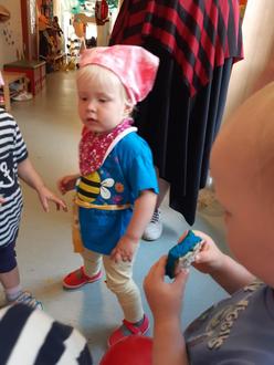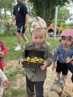In den Sommerferien haben auch wir alles ein wenig ruhiger angehen lassen. Wir haben das warme Wetter genossen, viel Eis gegessen, waren fast nur draußen und Wasserspiele kamen auch nicht zu kurz. Aber neben all dem haben wir dennoch nicht unsere Füße hochgelegt. Wir haben nämlich eine Weltreise unternommen und erkundeten in 42 Tagen sechs verschiedene Länder. Wir lernten die Besonderheiten kennen und ihre Sprache, malten die Flaggen aus und probierten landestypisches Essen. In der Krippe „Kinderland“ hieß es dieses Jahr „Ab ins Meer“. Unter diesem Projektnamen gestalteten die Erzieher und Kinder fünf schöne Wochen. Sie lernten viele Meerestiere kennen, „tauchten“ ins tiefe Meer und stachen ins Meer. Auch der Regenbogenfisch kam zu Besuch. Jede Woche stand unter einem neuen Motto. Wieder einmal funktionierte dies mit der tollen Zusammenarbeit der Eltern. Ein großer Höhepunkt war die Piratenparty. Mit einer großen Schatzsuche auf dem Spielplatz startete der Tag. Goldmünzen und Edelsteine galt es zu finden. Ein leckeres Piratenmenü stimmte alle kleinen Piraten friedlich. Gekleidet mit selbst gestalteten Tüchern verwandelte sich die Krippe in einen Ort voller Seeräuber.