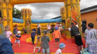 Ein besonders emotionaler Moment war, als eine Bewohnerin aus unserem Pflegeheim, die vor kurzem ihren 100. Geburtstag gefeiert hat, einen weißen Luftballon mit Wünschen für die nächsten 10 Jahre in den Himmel steigen ließ. Es war ein Tag mit vielen Überraschungen, wie einem kleinen Programm unserer Kinder, einer Trommelshow unserer Vorschulkinder unter Leitung von Herrn Härtwig, dem Pandino Bären, einem Zauberer, einer Schminkstation, einer Bastelecke von Familie Klemenz und einer Springburg. Kaffee und Kuchen sowie ein deftiges Würstchen durften natürlich auch nicht fehlen. Anziehungsmagnet war eine Tombola.