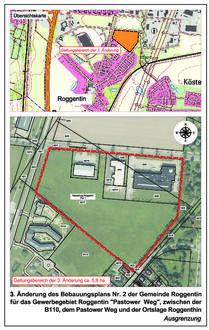 Betr.: | 3. Änderung des Bebauungsplans Nr. 2 für das Gewerbegebiet Roggentin „Pastower Weg“, zwischen der B110, dem Pastower Weg und der Ortslage Roggentin |