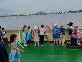 Nun ist es soweit, die Zeit im Kindergarten neigt sich dem Ende zu und eine neue abenteuerliche Reise wartet auf unsere Vorschulkinder. Bevor die Schule startet, haben wir am 25.07.2025 gemeinsam das Abschlussfest zum Thema „Seemansgarn“ gefeiert. Im Kindergarten trafen sich alle Kinder im Sportraum, dort wurden eure Stimmen aufgewärmt, gesungen und sich auf den Nachmittag vorbereitet. In den schönsten Kostümen im Meereslook begann die Fahrt mit dem Zug und dem Bus. Je näher wir der Likedeeler kamen, desto aufgeregter wurden alle. Aus dem Bus ausgestiegen, gingen wir ein kleines Stück, sahen das große Schiff und dann war es auch schon so weit. Alle legten ihre Rucksäcke ab, spielten Riesen-Mikado, Tischtennis oder Fußball auf der Festwiese. Die Vorfreude, das Schiff zu betreten, war sehr groß, dann kamen auch schon die Mitarbeiter der Likedeeler und begrüßten uns. Das Abenteuer startete auf der Likedeeler, unten im Schiff war ein großer Werkraum, in dem wir Schlüsselanhänger knoteten. Danach haben wir eine Führung durch das ganze Schiff bekommen. Wir durften einen Blick in die Kombüse und in die Kajüten erhaschen. Im Funkraum angekommen, wurde uns erklärt, wie die Geräte funktionieren und was der Morsecode bedeutet. Da wir auch ein paar Piraten an Bord hatten, durfte eine Schatzsuche nicht fehlen. Alle Kinder trafen sich auf der Festwiese und schon ging es los durch den IGA Park. Die Rätseljagd begann und die Vorschulkinder fanden auf dem Weg jede Menge Hinweise. Vor dem Schiff, unter Briefkästen, am Bach und auf Werbesäulen wurde fleißig gesucht. Es war gar nicht so einfach, alle Hinweise zu finden, der Schatz war nicht mehr in weiter Ferne. Unter einer Holzplane hinter einem kleinen Schuppen war er nun, der Schatz wurde gefunden. Alle Kinder liefen zu dem Versteck. Der goldene Schatz der Likedeeler für unsere baldigen Schulstarter. Zur Stärkung haben wir Würstchen gegrillt und Capri Sonne getrunken. Dann war es auch schon so weit, der Abschied nahte und eure Eltern haben euch abgeholt. Liebe Vorschulkinder, wir freuen uns, dass ihr bei uns im Kindergarten wart. In der Schule wünschen wir euch sehr viel Freude und jede Menge Spaß am Lernen.