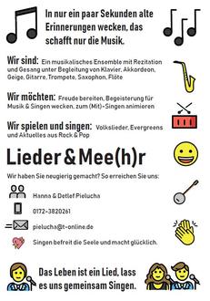 Feiern Sie die besinnliche Weihnachtszeit mit der Gruppe „Lieder & Mee(h)r“ bei einem leckeren Getränk und kleinen Naschereien und lassen Sie sich von festlichen Klängen und stimmungsvollen Liedern verzaubern.