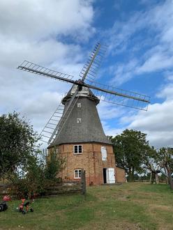 Mit dem Bus fuhren wir dann weiter zum Mühlenhof nach Altkalen. Malerisch eingebettet, mitten in der Mecklenburgischen Schweiz, steht die Windmühle in Altkalen. Seit mehr als 120 Jahren prägt die Mühle das Bild einer bezaubernden Landschaft. Auf dem Mühlenhof wird, wie zu Großvaters Zeiten, regelmäßig Korn mit Windkraft zu Mehl gemahlen. Nach der interessanten Vorführung und den lustigen Anekdoten haben wir in der rustikalen Kornhalle den selbstgebackenen Kuchen und Kaffee zu uns genommen. Zum Abschluss kann man sagen, wer einmal im Schatten einer Windmühle dem Rauschen der Flügel gelauscht, das Mahlen, die Mühlensteine beobachtet und den Geruch des frisch gemahlenen Mehls genossen hat, kann sich der Faszination dieser urtümlichen Gemäuer nicht mehr entziehen. Schon allein dieser Umstand ist einen Besuch auf dem Mühlenhof Altkalen wert, um einem Windmüller bei der Arbeit über die Schulter zu schauen. Mit frischgebackenem Brot traten wir gut gelaunt die Heimreise an.