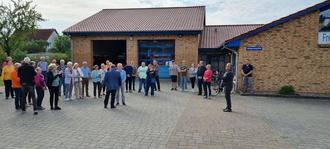 Beeindruckt war auch Günther Selig, ein Dabeler Urgestein. Bei einer Filmpreisverleihung würde man sagen, dass er für sein Lebenswerk ausgezeichnet wurde. Über 60 Jahre ist er Mitglied der freiwilligen Feuerwehr unserer Gemeinde und war lange Zeit auch Wehrführer. Und welche Hausfrau denkt nicht noch an Günther’s Laden, wenn am Sonntag das Mehl für den Kuchen fehlte und man schnell mal den Ehemann zu Günther schicken konnte. Natürlich mit einem gewissen Risiko verbunden, dass das Backen verschoben werden musste, weil es dort eben auch oft sehr gemütlich war. Also grundsätzlich ein großer Verdienst in der sogenannten Nahversorgung der Bevölkerung. So fanden es die Kameraden der Feuerwehr mit Unterstützung der Dabeler Gemeindevertretung nur recht, den Platz vor dem Feuerwehrgebäude zum Günther-Selig-Platz zu machen. Also ab sofort trifft sich die Gemeinde zum Osterfeuer oder zur Karnevalseröffnung auf dem Günther-Selig-Platz.