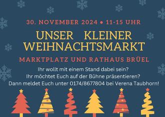 Bereits am Samstag, den 30. November 2024 findet in diesem Jahr der kleine Brüeler Weihnachtsmarkt auf dem Marktplatz und im Rathaus statt. Von 11.00 bis 15.00 Uhr erwartet die Brüeler und ihre Gäste eine Auswahl an kleinen Ständen mit Handwerk, Deko und kulinarischen Leckereien. Bürgermeister Burkhard Liese wettet in diesem Jahr, dass die Kinder aus Kindergärten und Schulen und die Mitglieder der Vereine es nicht schaffen, alle Rathausfensterscheiben mit weihnachtlichen Motiven im Lebkuchendesign (Brezel, Sterne, Herzen, Glocken, Lebkuchenmänner und natürlich -frauen usw.) zu schmücken. Die gebastelten Motive sind bei Frau Saalmann in der Stadtbibliothek abzugeben - Abgabeschluss ist Freitag der 22. November 2024. Es werden drei Geldpreise für die Vereine oder Einrichtungen ausgelost, die sich an der Bastelaktion beteiligen.