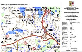 Mit diesem Beschluss wird der Freiwillige Landtausch „Golchen-Blankenberg, Gemeinde Blankenberg und Stadt Brüel, Landkreis Ludwigslust-Parchim, nach § 103c Abs. 2 Flurbereinigungsgesetz (FlurbG) angeordnet.