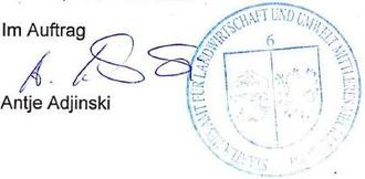 Gegen die Feststellung der geänderten Wertermittlung kann innerhalb eines Monats nach Bekanntgabe Widerspruch beim Staatlichen Amt für Landwirtschaft und Umwelt Mittleres Mecklenburg, Sitz Rostock oder dessen Außenstelle, Sitz Bützow, eingelegt werden.