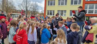 Schon von weitem war die Musik zu hören. Wir hatten allen Grund zu feiern. Am 20.03 war Frühlingsanfang und diesen wollten wir herzlich begrüßen. Dazu haben wir alle Kinder, Eltern, Geschwister, Onkel, Tanten, Omas und Opas eingeladen. Mit einer kleinen Gesangsprobe unserer Chorkinder sind wir in den Nachmittag gestartet. Die Chorkinder sind schon fleißig am Üben, denn sie haben einen großen Auftritt zur 775 Jahrfeier in Sternberg. Kurz danach wurden das Kuchenbuffet und die verschiedenen Stationen gestürmt.