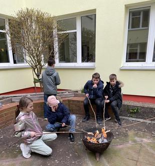 Gegen den kleinen Hunger, gab es lecker Knüppelkuchen. Dieser musste natürlich selbst über eine Feuerschale gebacken werden.