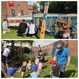 Schon im Mai war unser Eltern-Aktionstag ein toller Erfolg. Der Elternrat hatte erneut aufgerufen, unser Kita Außengelände zu verschönern. So konnten viele große und kleine fleißige Hände langgehegte Ideen und Wünsche der Kinder kreativ und liebevoll umsetzen: Gemeinsam sind schöne Sachen entstanden: ob ein neuer Weidentunnel, bunte Sichtzäune und Upcycling Blumentöpfe. Der Gummi Stiefel Zaun erstrahlt mit neuen Blümchen und die interessanten Spiel-Aktionswände im Krippenbereich lassen die Kinderaugen leuchten. Die Kinder hatten überall ihren Spaß dabei und die Bratwürste vom Grill waren super lecker.